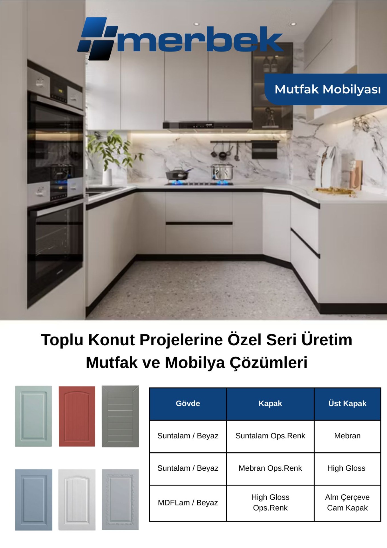 Toplu konut inşaatlarına yönelik mutfak mobilyası üretim.